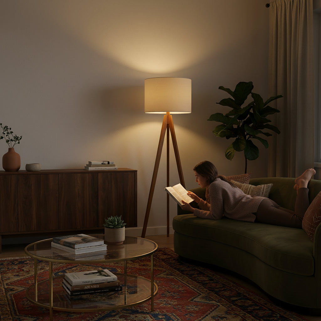 Luminárias de piso que criam camadas de luz e adicionam personalidade a qualquer canto do ambiente.